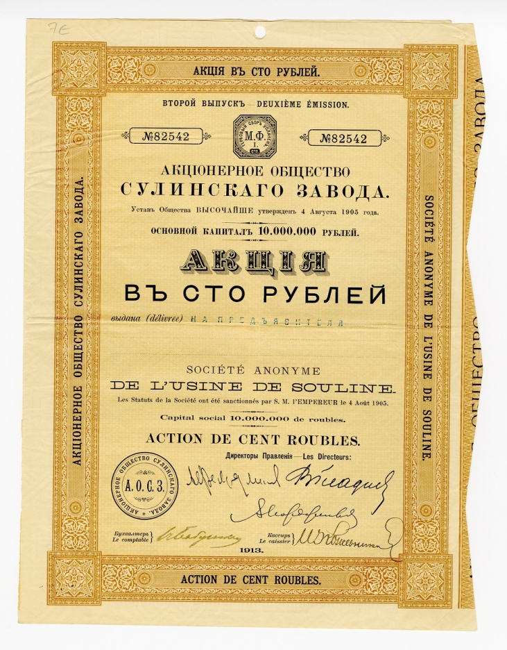 Несмотря на промышленный кризис 1902-1903 годов, развитие производства продолжалось. И в 1905-м году было зарегистрировано «Акционерное общество Сулинского завода». В его Уставе отмечалось, что оно создается «…для эксплуатации принадлежащих Пастухову залежей руд, флюсов, антрацита, каменного угля и других полезных ископаемых». Учредителями общества, подчеркивая его «семейный характер», выступили «потомственные дворяне Николай Петрович, Леонид Николаевич и Сергей Николаевич Пастуховы».