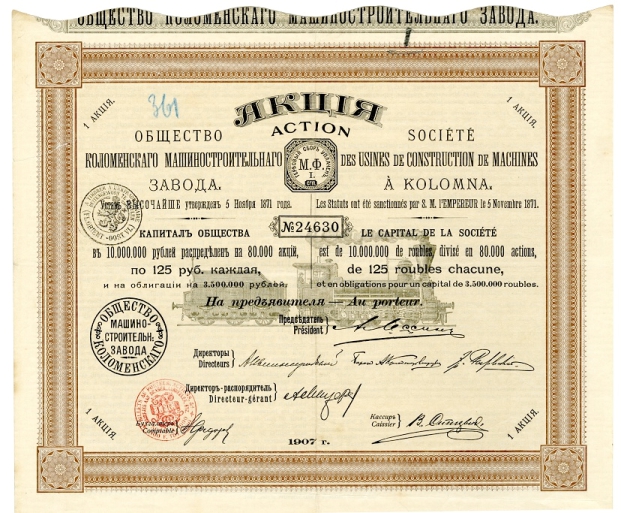 С 1878 года параллельно с производством паровозов и вагонов был налажен выпуск речных судов. Был построен первый речной пароход «Кулебаки». Завод производил также востребованные на внутреннем рынке локомобили, земледельческие и землечерпальные машины. Все это требовало не только расширения производства, но и аккумулирования финансовых ресурсов. И в 1870 году было образовано Акционерное общество «Коломенский машиностроительный завод».