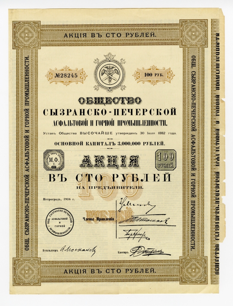 Накануне и во время Первой мировой войны «Общество» стало фактически монополистом на асфальтово-гудронном рынке России. И если еще в начале столетия асфальтово-гудронные поставки в Империю были, преимущественно, зарубежные, то очень скоро отечественное производство оказалось доминирующим. И даже, несмотря на войны и революции, асфальтовое производство в регионе сохранялось и производственные мощности, не взирая на проведенную национализацию, продолжали свою деятельность для российских дорог.