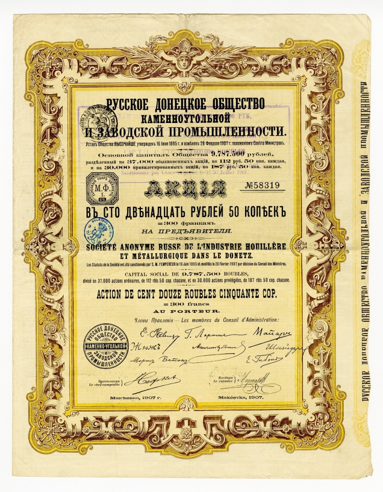В 1870-е годы земли в Макеевском округе были приобретены известным горнопромышленником и предпринимателем И. Г. Иловайским, будущим основателем и руководителем Совета Съезда горнопромышленников России. А 3 июня 1895 года наследники Иловайского выступили учредителями нового акционерного общества – «Русского Донецкого общества каменноугольной и заводской промышленности». Значительную часть акций приобрели также подданные Франции и Бельгии, также весьма заинтересованные в развитии южнорусской горной промышленности.