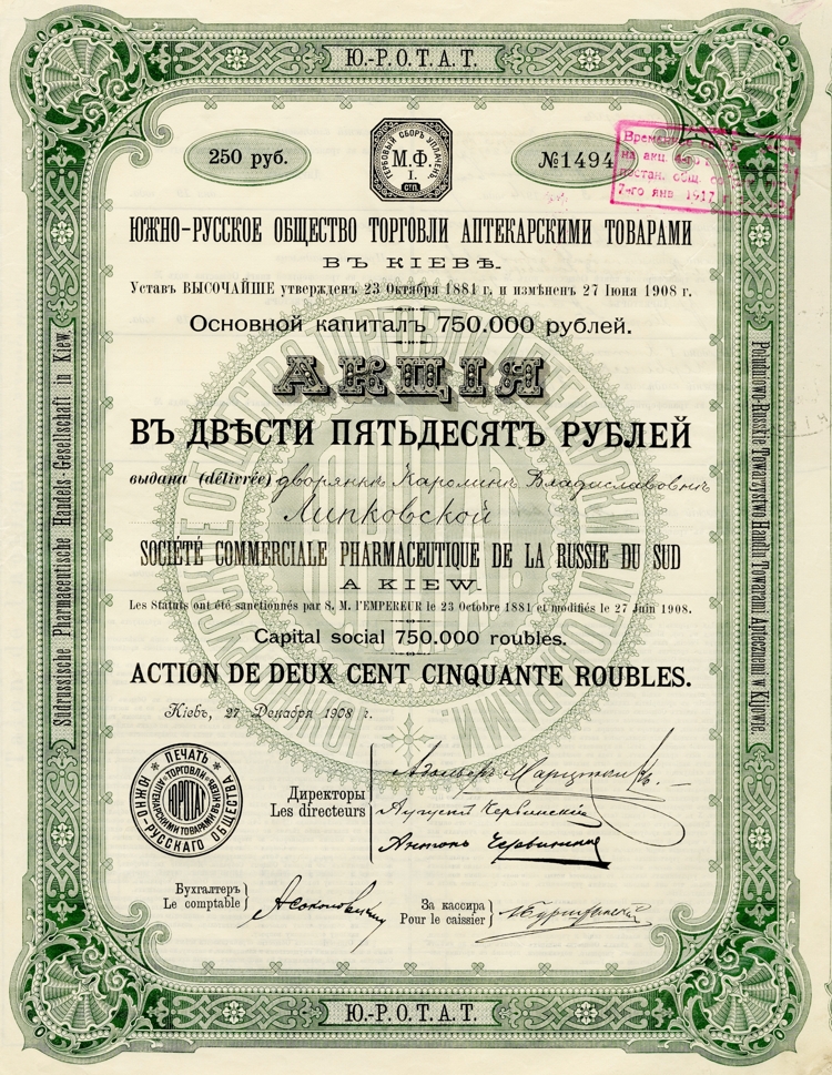 Фармацевтическая отрасль всегда контролировалась государством. Это был весьма доходный бизнес. А в 1865 году в Киеве, третьей столице Империи, как его называли, работало 14 аптек. Почти все они были частными. Государственные аптеки были в губернских центрах, но большинство из них сдавались в аренду частным провизорам. Владельцами киевских аптек в XIX веке были иностранцы.