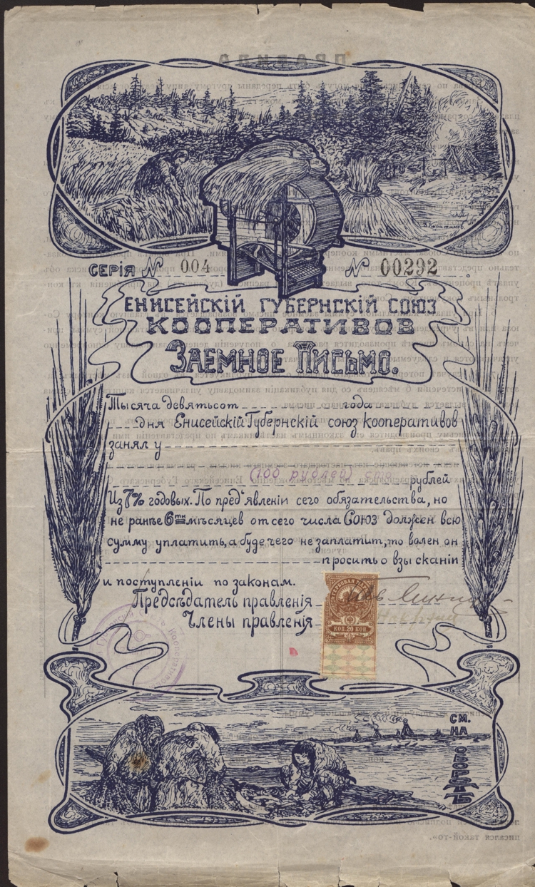Не остановила деятельность союза даже Гражданская война. В 1919 году, например, Енисейский губернский союз кооперативов начал оформлять заемные письма под 7% годовых на срок не менее 6 месяцев.