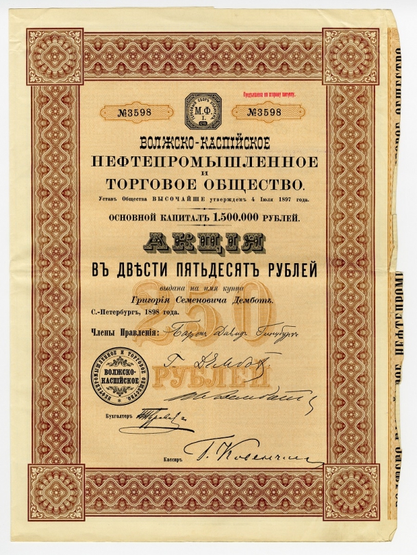 В 1897 года братьями Григорием Семеновичем и Иосифом Семеновичем Демботами было создано акционерное Волжско-Каспийское нефтепромышленное и торговое общество с основным капиталом 1,5 млн рублей, разделенных на 6 тыс. акций по 250 рублей каждая. Правление общества располагалось в Санкт-Петербурге, а свою деятельность предприятие вело, практически постоянно около Баку и на всем Северном Кавказе.