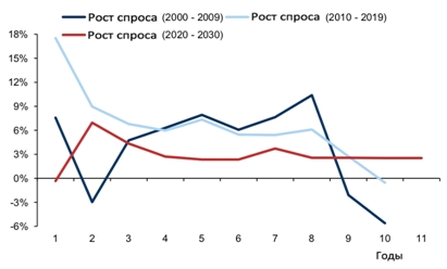 Электромобили также станут двигателями спроса на зеленый алюминий. Их годовой объем спроса, предположительно, будет составлять 12 млн тонн алюминия к 2030 году и, согласно нашим прогнозам, будет расти на 20% ежегодно в течение оставшейся части десятилетия. Данный сектор экономики демонстрирует непрерывное расширение на фоне растущей поддержки со стороны правительств. Аналитики оценивают значительный рост проникновения электромобилей в Европу – до 70% к 2030 году и до 40% в США. Вместе с расширением рынка, растет и спрос на алюминий, на их долю приходится 65% всего спроса.
