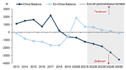 Разрешение данного парадокса заключается в изменениях технологий производства алюминия в сторону экологически чистого. «Зеленый переход», на наш взгляд, требует декарбонизации поставок алюминия, что в свою очередь, требует инвестиций и более высоких затрат алюминиевых заводов. Отсюда, государственные политики должны стимулировать производителей и инвесторов изменить производственные технологии. Например, как Китай, ограничить производство угля, тем самым создав дефицит алюминия, который, в свою очередь, простимулирует производителей модернизировать технологии производства в сторону экологически чистых. В 2017 году Пекин ввел ограничение на плавильную мощность в 45 млн тонн наряду со строгими правилами замены старых мощностей на новые. Еще одним вариантом является включение цены на углерод в структуру затрат производителей, как это осуществляется в Европе. Таким образом, наиболее загрязняющие технологии становятся неконкурентоспособными на мировой арене. Такой подход позволяет постепенно изменить производственные технологии, не изменяя цен. Также стимулом может выступать, например, генерация «зеленой маржи». Она образуется в тех случаях, когда производителей обязывают платить углеродный сбор за выбросы углерода и в дальнейшем конкурировать с обезуглероженными аналогами, которые используют более дешевые методы производства. Стоит отметить, что для процесса модернизации производства необходим капитал, однако инвестиционная политика экологического, социального и корпоративного управления избегает углеродоемкого товарного производства. Более того, для потенциальных инвесторов присутствует риск, касаемо проводимой политики в области климата, показателей выбросов и неопределенность в отношении будущих доходов, что также оказывает негативное воздействие на привлечение инвестиций. Отсюда, можно предположить, что рост предложения резко замедлится в середине десятилетия. Несмотря на то, что алюминиевый завод имеет более короткие сроки строительства, чем, к примеру, медный рудник, временные задержки, вероятнее всего, приведут к самому низкому уровню роста мировых поставок первичного металла за 40 лет в первой половине 2020-х годов. Спрос и потребление экологических металлов будут расти, что, согласно нашим предположениям, приведет к дефициту алюминия, который составит 3 млн тонн к концу 2023 года и 9 млн тонн к середине десятилетия.