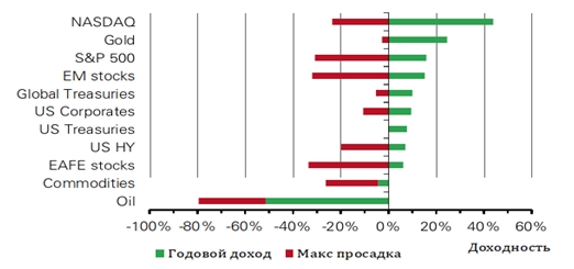Золото также имело одну из самых низких просадок в течение года, что помогало инвесторам ограничивать убытки и управлять риском волатильности в своих портфелях (график 1).