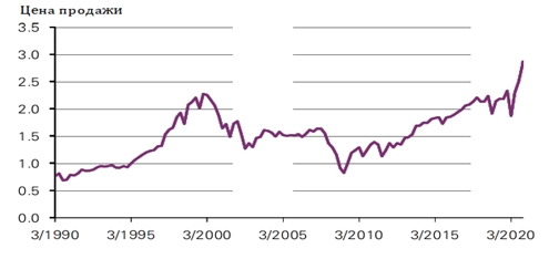 Отношение цены к продажам S&P 500 находится на беспрецедентном уровне (график 2), и анализ Crescat Capital показывает, что 15 факторов, составляющих их модель оценки S&P 500, находятся на рекордных или очень близких к ним уровнях. В дальнейшем мы полагаем, что очень низкий уровень процентных ставок во всем мире, вероятно, сохранит цены на акции и их оценку на высоком уровне. Таким образом, инвесторы могут испытывать сильные колебания рынка и значительные откаты. Это может произойти, например, если программы вакцинации занимают больше времени для распространения или являются менее эффективными, чем ожидалось, с учетом логистических сложностей или большого количества мутаций, зарегистрированных в некоторых штаммах.