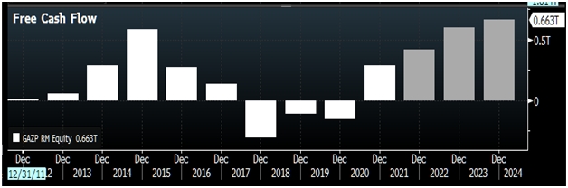 Кроме того, стоит учесть и сильные результаты Газпромнефти (доля Газпрома 96%), вклад которой в EBITDA в 2021 году может составить USD 7.5 млрд +40% (рост 40%).