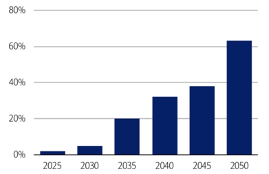 Кроме того, Европейская комиссия приняла меры по борьбе с авиационными выбросами, которые являются одним из наиболее быстро растущих источников выбросов парниковых газов. Комиссия предложила постепенно отменить бесплатные надбавки, которые в настоящее время получают авиакомпании, к концу 2026 года. Кроме того, авиакомпании должны будут соответствовать растущим требованиям к смешиванию устойчивого авиационного топлива (SAF) с требованием 2% в 2025 году, 5% в 2030 году и, в конечном счете, 63% в 2050 году.