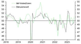 Согласно официальным опросам и опросам Caixin manufacturing surveys, тенденция к снижению производственной активности завершилась в прошлом месяце. Официальный индекс деловой активности в производственном секторе вырос с 49,3 в июле до 49,7 в августе, в то время как индекс деловой активности в производственном секторе Caixin резко вырос с 49,2 до 51,0.