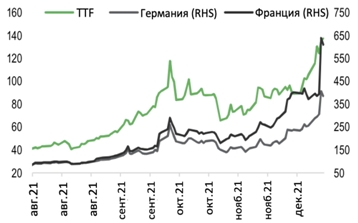 Рассматривая рынок цинка, компания Nyrstar объявила, что в первую неделю января деятельность плавильного завода Auby во Франции (производство 160 тыс. тонн в год) будет приостановлена. Наряду с ранее объявленным закрытием плавильного завода Glencore в Порто-Весме в Италии (производство 130 тыс. тонн в год) и плавильного завода в Пловдиве в Болгарии (72 тыс. тонн в год) это демонстрирует снижение на 17% от годового нормированного европейского производства. Также, Nyrstar заявила, что другие ее заводы в Бельгии и Нидерландах продолжат работать на пониженной мощности. Мы ожидаем, что это дальнейшее сокращение поставок может привести к глобальному дефициту цинка на 2022 год и привести к ценам в среднем до 3400 долларов США за тонну в 1 квартале 2022 года и 3100 долларов США за тонну во 2 квартале 2022 года.