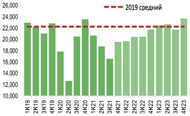 Прогнозы по производству автомобилей впервые в этом году улучшились. На данный момент, в связи с улучшением доступности полупроводников, мы ожидаем рост мирового производства легковых транспортных средств на +18% кв/кв в 4 квартале 2021 года, при этом предполагаем производство 82,3 млн автомобилей в 2022 году.