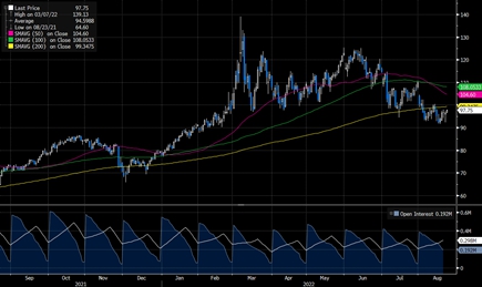На этой неделе состоится симпозиум по экономической политике в Джэксон-Хоул. Народ ждут выступления Пауэлла. Вопросом для всех остается, насколько агрессивно ФРС будет действовать со ставкой до конца года. На данный момент, в сентябре закладывают повышение на 0,5% несмотря на то, что последняя доступная статистика по инфляции хорошая и стала сюрпризом для рынков, и, согласно комментариям многих аналитиков, пик по инфляции уже пройден.
