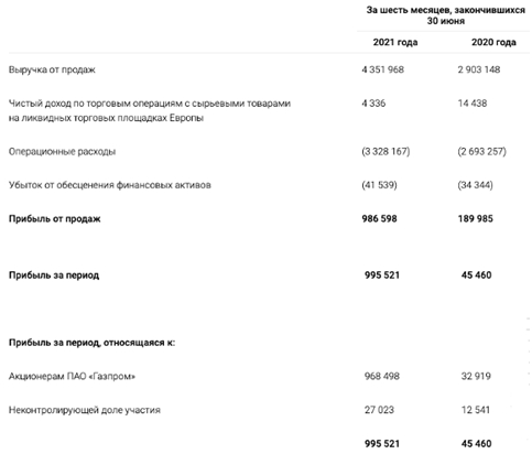 На этой неделе компания “Газпром” представила отчетность по итогам 1 полугодия 2021 года. Показатели стали рекордными. Чистая прибыль составила 995,521 млрд рублей.