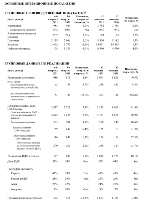 Компания “Русал” представила результаты операционной деятельности по итогам 2021 года. Выпуск алюминия увеличился на 0,2% до 3,764 млн тонн. В то же время продажи снизились на 0,5% до 3,904 млн тонн. Мы ожидаем отличные финансовые показатели по МСФО.
