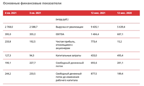 Корпорация “Лукойл” представила финансовую отчетность за 2021 год. Выручка за 2021 год составила 9435, 1 млрд рублей. Чистая прибыль по итогам 2021 года составила 773,4 млрд рублей против 15,2 млрд рублей годом ранее. Свободный денежный поток составил 693,6 млрд рублей.
