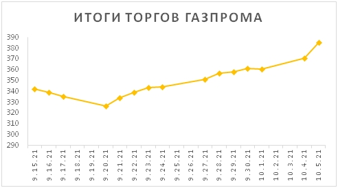 • Цены на нефть остаются на высоком уровне на фоне возрастающих цен на газ и уголь. В соответствии с этим, стоимость акций “Газпрома” вновь достигла исторического максимума.