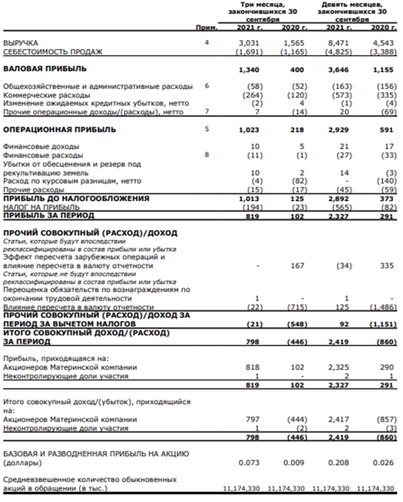 “ММК” продемонстрировала финансовую отчетность по итогам 9 месяцев. Прибыль компании снизилась на 21% до 819 млн долларов, выручка составила 3,03 млрд долларов.