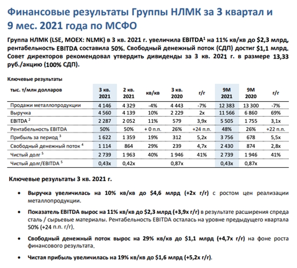Финансовые показатели в отчетности “НЛМК” достаточно высокие, несмотря на снижение производства стали на 15% из-за инцидента на Липецкой площадке в августе и последующих ремонтных работ. Производство восстановилось с окончанием ремонтных работ и в сентябре составило 97%.