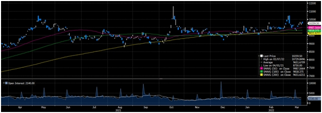 Цинк: Из основных металлов, которые мы рассматриваем, спрос на цинк в Китае является наиболее неопределенным. Показатели загрузки заводов по производству оцинкованной стали были более низкими, чем обычно, в связи с февральской Олимпиадой, а также ограничениями, связанными с коронавирусом. Как и в случае с другими недрагоценными металлами, потребители не решаются пополнять запасы по предполагаемым высоким и волатильным ценам и в настоящее время располагают очень ограниченными запасами. Это привело к увеличению внутренних запасов цинка выше среднего за последние шесть недель несмотря на то, что импорт цинка, как сообщается, был намного ниже, чем годом ранее.