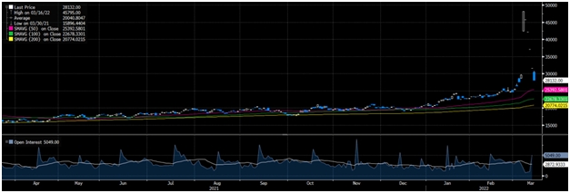 В связи с небольшим снижением риска поставок из России внимание на этой неделе вновь переключилось на Китай, который сталкивается с одной из крупнейших проблем, связанных с пандемией коронавируса.