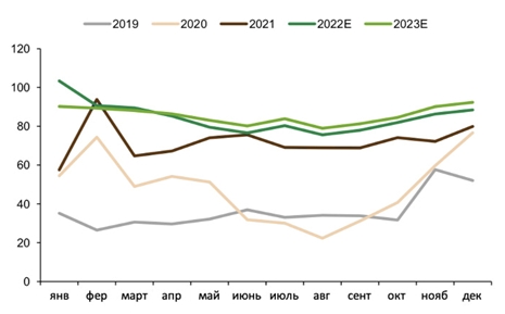 Это, на наш взгляд, создает риски возобновления дефицита для баланса газа в Европе летом 2022 года. При этом любые дополнительные задержки в запуске Северного потока - 2 могут привести к повышению цен по сравнению с нашими ожиданиями.