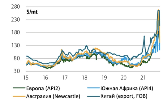 Цены на энергетический уголь резко выросли в этом году, достигнув рекордно высоких уровней, причем как в Ньюкасле, так и в Европе цена на уголь API2 в октябре превысила 250 долларов за тонну, прежде чем ослабнуть из-за действий Китая по увеличению поставок и ограничению внутренних цен.