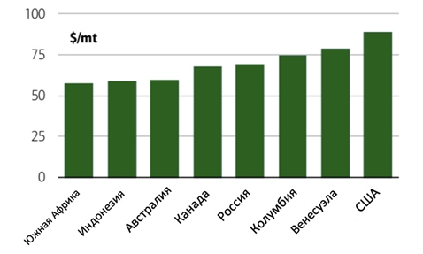 Стоимость поставок угля по странам, 6000 тыс. куб. м., поставленных в Китай