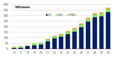Цены на литий выросли по мере того, как производство EVs продолжало расширяться. Продажи EVs ускорились даже после того, как вспыхнула пандемия коронавируса. На это в значительной степени повлияло постоянное внимание к декарбонизации, что свидетельствует о том, что продажи EVs будут быстро расти в ближайшие годы. В связи с этим мы считаем, что риск по требованию смещен в сторону повышения.