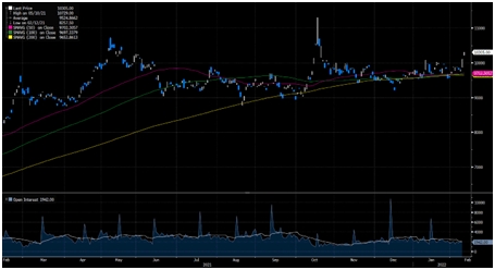 Если посмотреть на динамику цен с начала пандемии, то медь традиционно росла в периоды последовательных положительных макроэкономических данных - от первоначального стимулирования Китая до создания вакцин и растущего спроса со стороны развитых рынков. С каждым ралли рынок меди выглядел еще более напряженным, достигнув сегодняшней точки рекордно низких запасов. Действительно, с учетом того, что с октября рынок меди постоянно снижался, а запасы на бирже не увеличивались, с рынка поступало мало сигналов, указывающих на скрытые дополнительные запасы. С учетом того, что опасения по поводу недвижимости в Китае остались позади (Пекин предпринял несколько дальнейших шагов по стабилизации своего сектора недвижимости, преодолев препятствия для спроса на медь), а инвесторы с перекрестными активами начинают анализировать поворот центральных банков, мы считаем, что рыночные условия создают предпосылки для роста цен на металл. На наш взгляд, это, скорее всего, произойдет после того, как в конце марта будет видно полное воздействие роста акций юаня, наряду с ожидаемым началом цикла повышения ставки ФРС. В этом контексте мы ожидаем цены на медь на уровне 12 000 долларов за тонну на горизонте 12 месяцев.