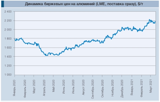 Во время первой волны пандемии, рост производства не замедлился, когда во многих странах резко упал спрос. В этот период на мировом рынке алюминия было избыточное предложение (примерно на 2,5–3 млн тонн), что объясняет увеличение запасов алюминия. Сейчас потребление алюминия восстанавливается, что помогает сократить избыток предложения.