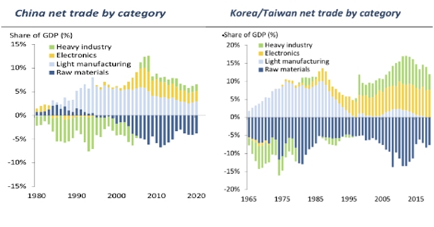 Чтобы ответить на вопрос так ли это, любопытно посмотреть на изменения в относительной специализации Китая в рамках международной торговли.