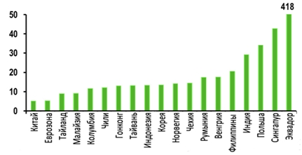 К ним относится Эквадор, который извлек выгоду из восстановления цен на нефть в прошлом году, в то время как слабый внутренний спрос сдерживал импорт. Также, в Польше произошел прирост в 36%. Среди стран с переходной экономикой в Швейцарии наблюдался рост почти на 27%, в то время как резервы Норвегии выросли на 14%. Эти достижения отражают усилия по предотвращению повышения курса национальной валюты в условиях смягчения денежно-кредитной политики со стороны ФРС и ЕЦБ.