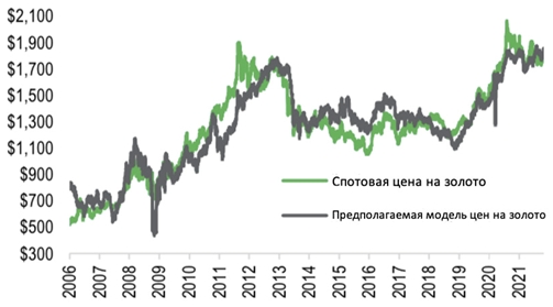 Мы рассматриваем реальную доходность в США как основной фактор роста цен на золото. Золото является безрисковым активом без прибыли, поэтому увеличение безрисковой реальной доходности казначейских облигаций увеличивает альтернативные издержки владения золотом и, следовательно, делает инвестиции в золото менее привлекательными.