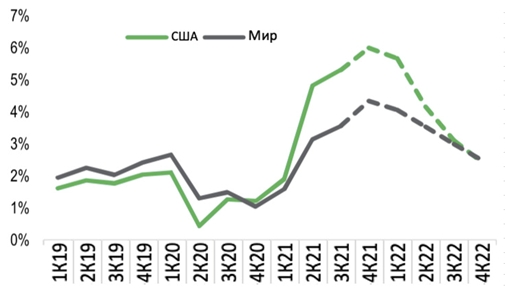 Учитывая сохраняющиеся риски в цепочке поставок и риск повышения цен на энергоносители, общая инфляция, вероятно, будет оставаться высокой, по крайней мере, до конца года.