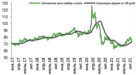 В ближайшей перспективе, при сохранении инфляционных рисков и слабом позиционировании инвесторов, мы ожидаем, что цены останутся поддержанными в среднем до 23 – 24 долларов за унцию в 4 квартале 2021 года.
