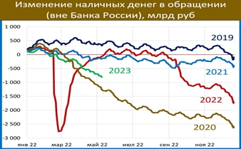 3. Цифровой рубль. Народ напрягся от разговоров про цифровой рубль, боится, что государство обяжет им пользоваться (как насильно перевели бюджетников на карту мир), начнет контролировать все расходы. Это могло повысить спрос на нал. НЕОБОСНОВАННЫЕ ОПАСЕНИЯ, но ЦБ надо активней проводить разъяснительную работу