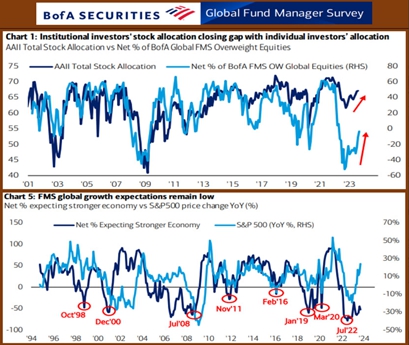 • Ставка ФРС: 60% полагают, что повышательный цикл окончен (в июле 90% полагали, что нет). 74% считают, что первое снижение ставки будет во 2кв24.