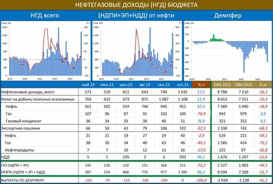 По данным Минфина, НГД в октябре – 1 635 млрд (27.5% гг); с начала года – 7 210 млрд (-26.3% гг).