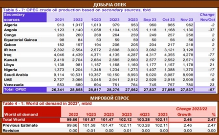 В ежемесячном обзоре ОПЕК были сохранены оценки глобального спроса в 2023г в 102.11 млн бс. и в 2024 в 104.36 млн. бс (+2.25 млн бс). Основной рост потребления – Китай, Ю-В Азия, ЛатАм.