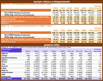 В опубликованном ежемесячном обзоре ОПЕК были сохранены оценки глобального спроса в 2023г в 102.11 млн бс. и в 2024 в 104.36 млн. бс (+2.25 млн бс).