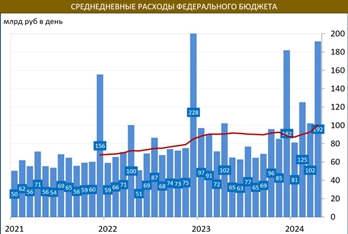 Расходы вновь растут. По данным электронного бюджета с 1 по 12 апреля среднедневные расходы подскочили до 192 млрд в сутки. Это намного выше, чем было в феврале (125 млрд), когда авансировался госзаказ. Но это выше даже декабрьского уровня (182 млрд).