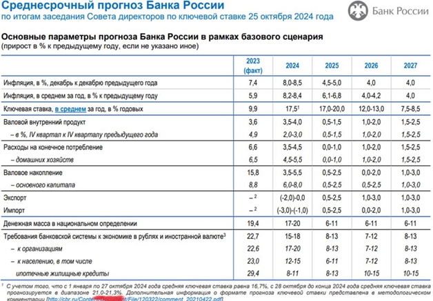 Был также обновлен и прогноз регулятора. прогноз. Здесь есть весьма неоднозначный для большей части публики момент - прогноз средней ставки до конца года (21.0-21.3%) означает, что на заседании 20 декабря ставка может быть поднята сразу до 23% (если ставка 20 декабря будет поднята до 22%, то средняя до конца года – 21.1%, если до 23%, то средняя – 21.3%). Сигнал из пресс-релиза– «допускает возможность» означает, что вероятность повышения очень высокая (когда ЦБ сомневается, он даёт сигнал «оценивать целесообразность»).