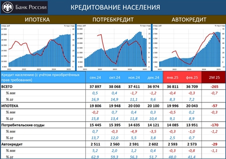 Слабость кредита зимой во многом связана со сверхвысокими расходами бюджета (дефицит фед. бюджета за дек-фев – 6.2 трлн, ННГД – 8.6 трлн). Получив деньги из бюджета, бизнес загасил кредит. В марте госрасходы нормализовались. Так что в этом месяце мы получим более объективную оценку кредитной активности