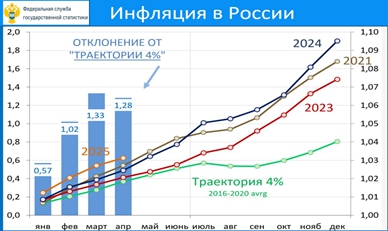 В АПРЕЛЕ рост ИПЦ: 0.40% мм / 10.23% гг - сильно ниже оценки из недельных данных (0.48% мм).